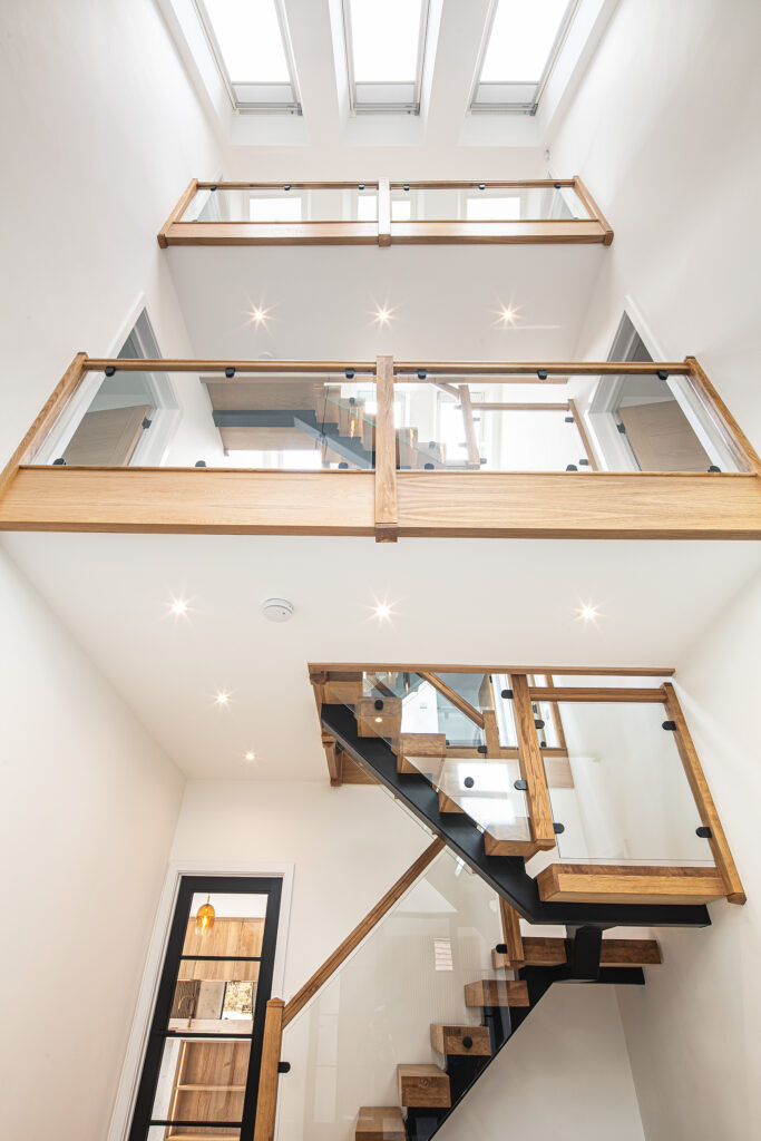 One of the homes has a breathtaking entrance and hallway that is flooded with light from the celing roof lights, with a floating staircase that carries you to the upper floors. This home would be immediately sold, and so needed the wow factor that potential buyers would be looking for including a large garage with electrical charging for two vehicles.